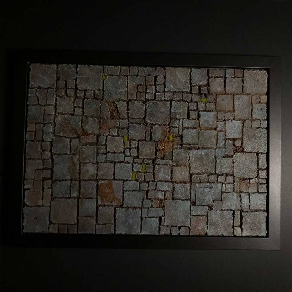 Painting. removed the frame, so you just have the backing board and bricks. You can then prime this with some dark paint and Mod Podge.