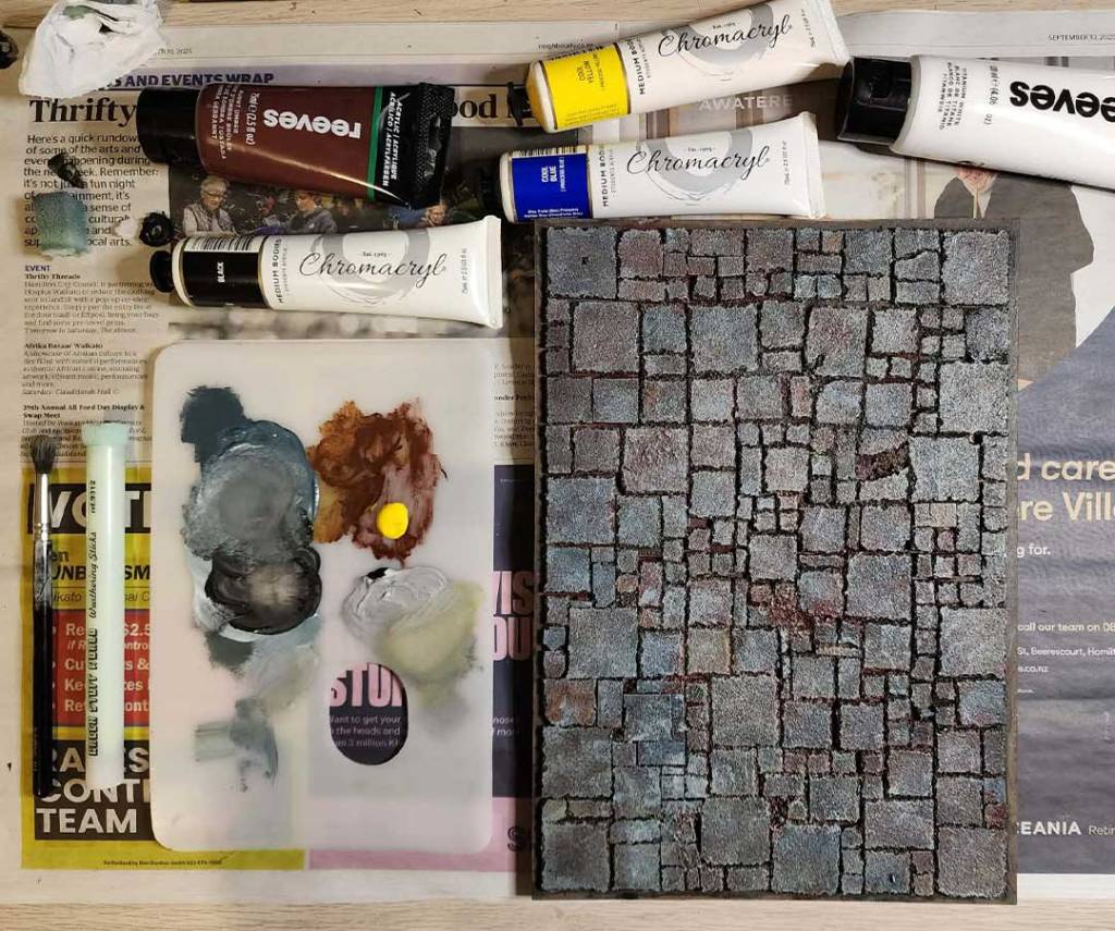 Once the brown tones had dried i mixed some grey tones and dry brushed the whole lot.